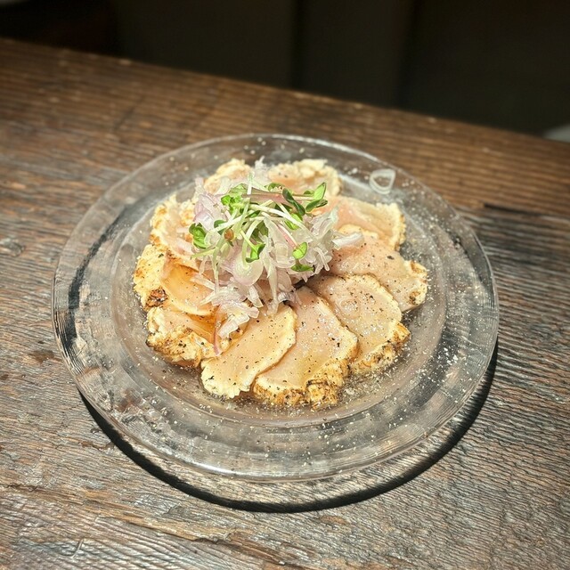 ごま油の香りが良い鶏パッチョや、炭炙りのねぎ塩ユッケもお肉が柔らかくて、本当にこのお店の鶏肉使ったお料理全部おいしい