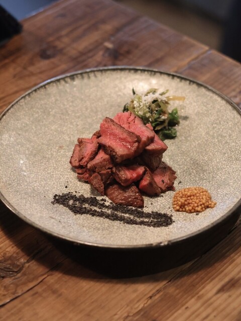 粒マスタード、炭塩などでシンプルに味わうのも良かったし、添えられた炭焼き九条ネギの醤油漬けがまた名脇役で美味しかったー✨