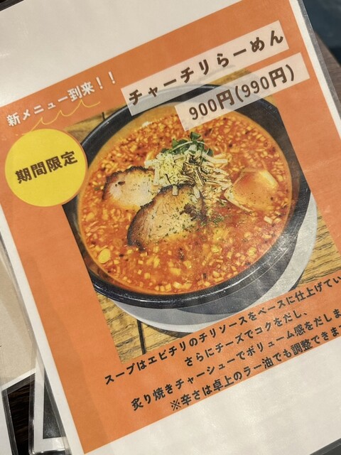 エビチリのチリソースをベースにしたスープにチーズがコクと深みを出してる❤️