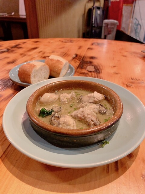 牡蠣がプリップリでアヒージョもにんにくがたっぷりでめっちゃ美味しかったです