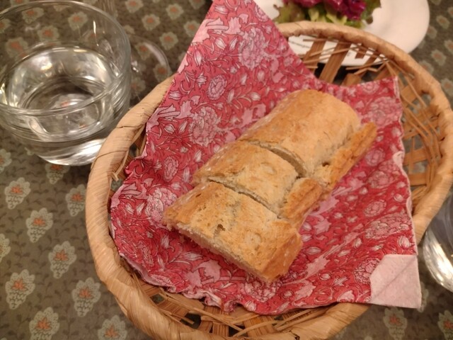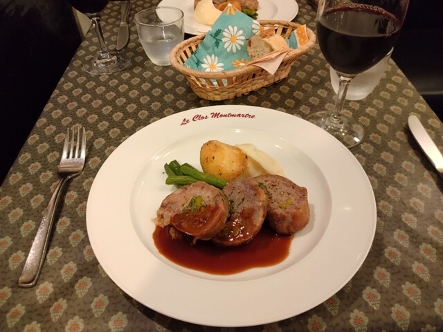 そして、メインの豚足の肉詰めロースト様 ポルト酒ソースはぁ……うっわ〜、(香りが)豚足だ!でも骨等全く無い。豚足を開いて骨を取り除き、腸の薄皮に入れてからローストしただって〜!スゲー!めっちゃ手間暇掛かってる、まさにフレンチ!ランチョンメニューが進化している…これ、ブータンノワールじゃないけど、赤ワインにバッチこいやん!今までディナーメニューでしかなかった子が、ランチメニューにお出ましとは!