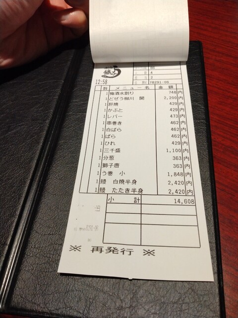 グッチチームは2階のテーブル席にキャットイン。どれどれ、メニュー様〜と思いきや、うな鐵様知り尽くしてるキャットが流れるように、鰻串焼きから、肝焼きが、かぶと、レバー、くりから、串巻き、白ばら、ばら、ひれ、をオーダーキャット。