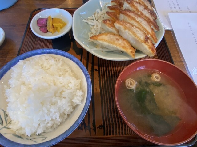 ボリュームある肉厚な餃子。9個定食で十分お腹いっぱいになります。