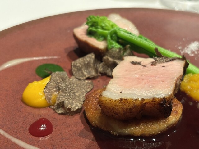 トリュフ、甘いさやえんどう、豚肉、などなど、素材の素晴らしさに、シェフの創意工夫が加わり、素晴らしいディナー。