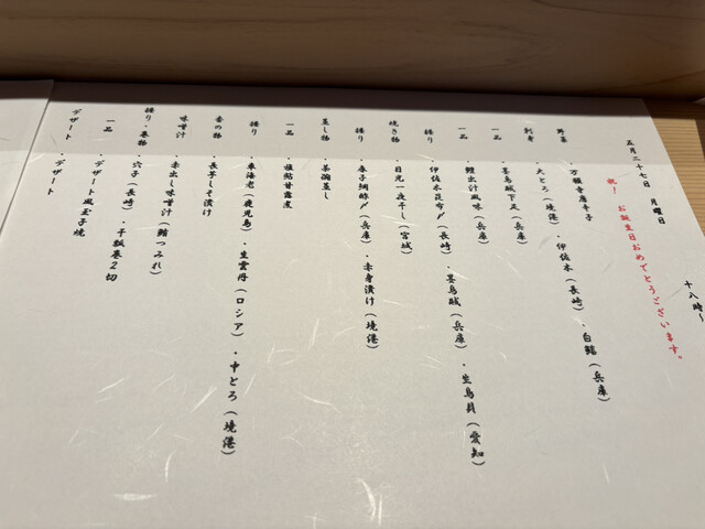 予約の際、夫が誕生日なことを明記したらメニュー表にお祝いの一文とメッセージカードが!