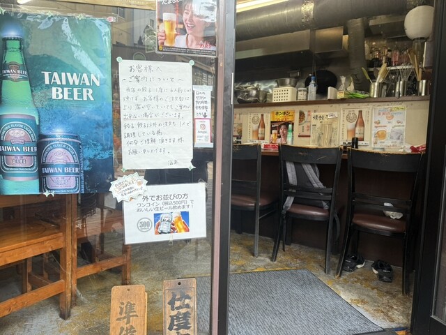 土曜日15時に店前に到着、あっという間に行列になりました。店前に4脚椅子を出してくれるので、どうせ並ぶなら座って待てるように、15時前から先頭をねらうのが、良いかもしれません。今日はGWで特別に30分早め、16時半には開店。開店しても1度に餃子は6人前しか焼けないみたいなので、数回に分けて提供されることもあります。餃子の注文は、入店前に聞かれた、入店後の追加注文は出来ないみたいです。男性なら2人前は普通にいけると思います。餃子の肉汁は熱いですが火傷するほどではないです。