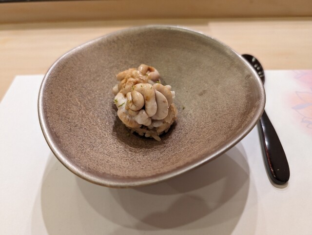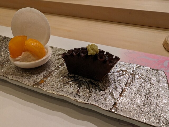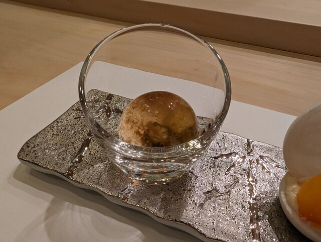 先ずはお通し3種。梅とおくらのジュレが特に好きでした。鰹の出汁が良く出てます。