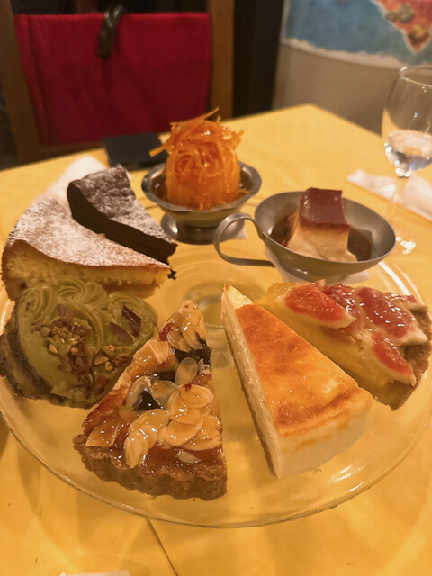 ・マチェドニア、アフォガート、プリン、チョコレートケーキ、ミルフィーユ