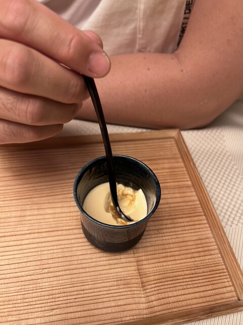口取り。小鍋でウニと湯葉、確か枝豆のスリ流し。