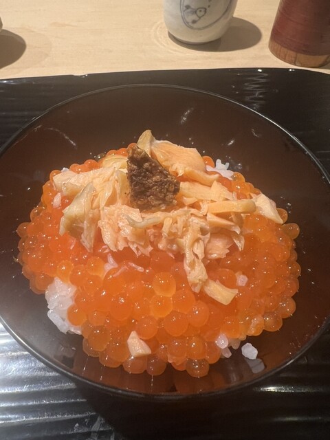 締めは新物のいくらと鮭の親子丼。この日は連れの分も回されてきたからこれでお腹いっぱいでしたが、いつもなら2杯目は卵トッピングで言ってました。