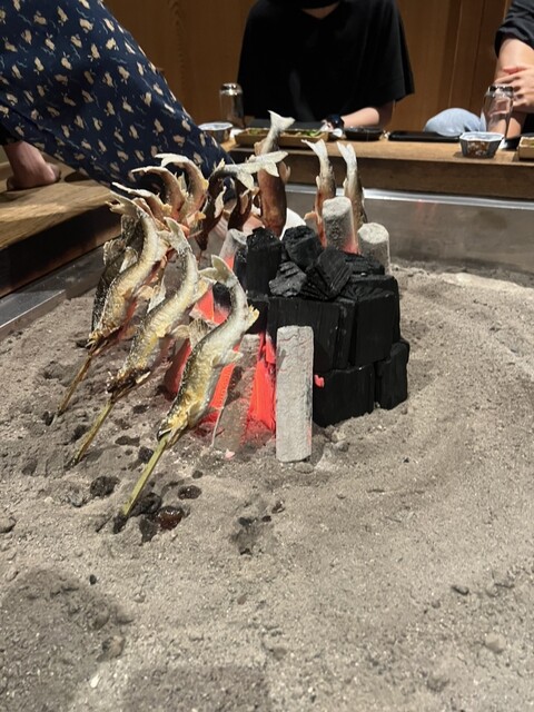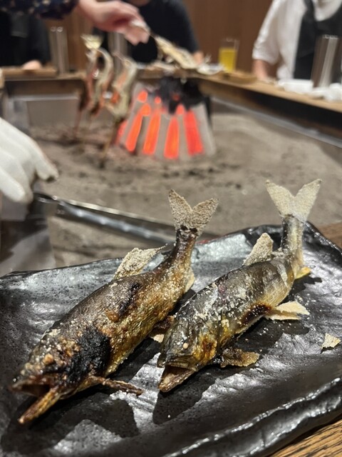 部屋の真ん中には囲炉裏があり、すでに炭が入っており鮎が焼かれておりました。