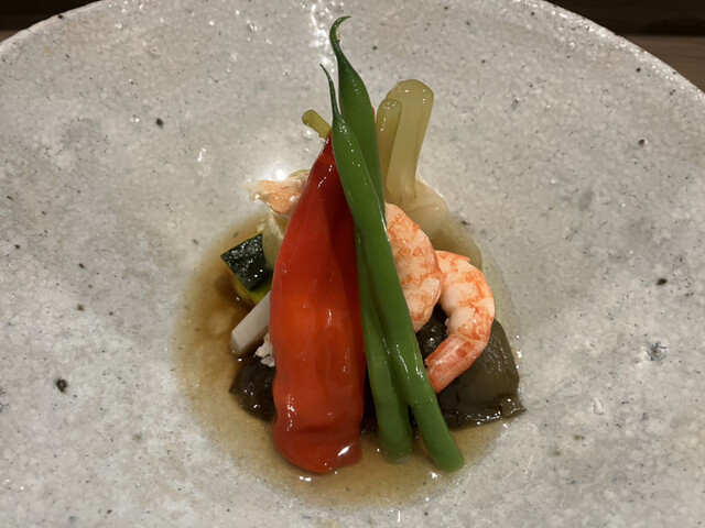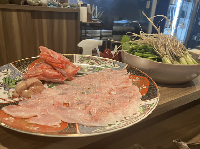 お造り5種は、縞鯵、鮫鰈、金目鯛、青ゾイ、クエ系の魚