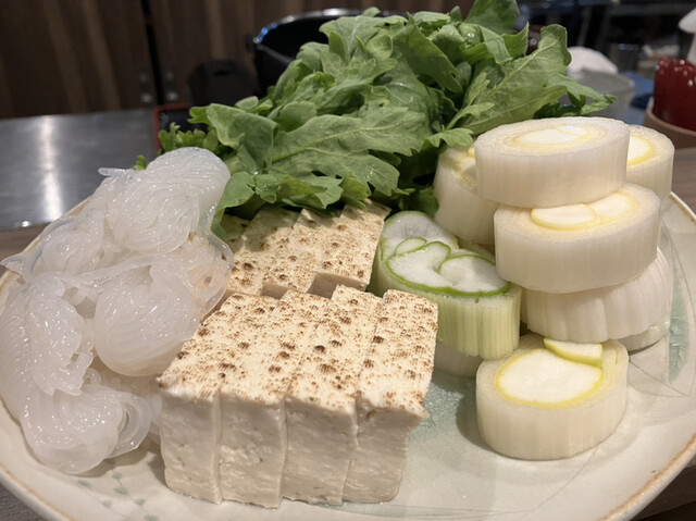 鍋の具材①下仁田ネギ、春菊、白滝、豆腐