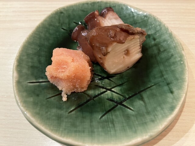 タチウオ、タコの柔らか煮、タラコの山ワサビ和え
