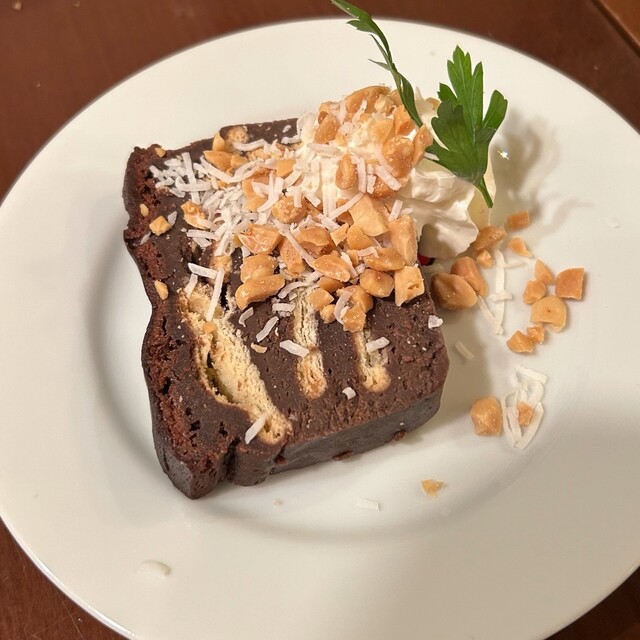京都ならではのエッセンスを取り入れたグラーシュ風煮込みは、ハンガリーのシチューをドイツ風にアレンジし、さらに京野菜をプラス。とろとろに煮込まれた豚肉はスプーンでほぐれるほど柔らかく、野菜の甘みとスパイスの香りが調和した、まさに優しい旨味のかたまり。パンとの相性も抜群。