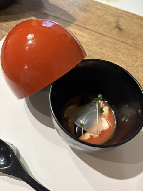 ・ホタテと花びら茸を添え