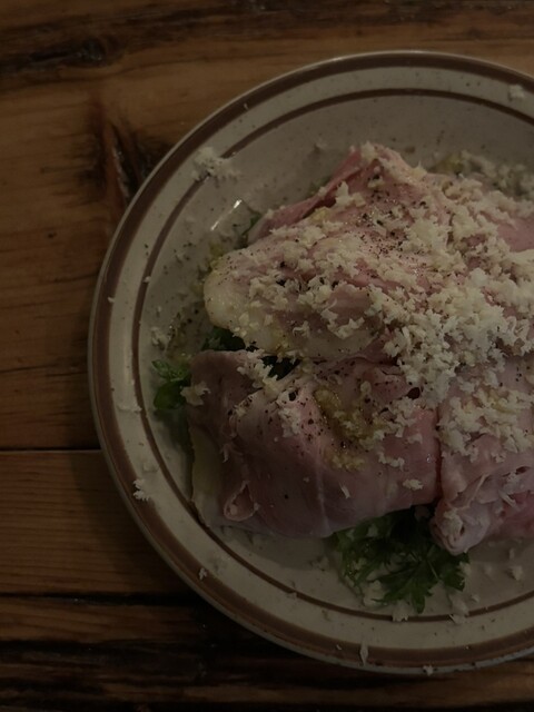 加熱されたプロシュートに山わさびを沢山かけて頂く。