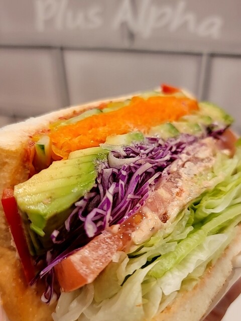チーズと卵の絶妙なコンビネーションが特徴のBLTサンド、オリジナルゴマソースの畑サンドは爽やかで健康感満点健康ダイエット中におすすめの一品。