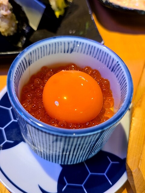 えびかに合戦〜サーモン参戦〜は979円で、えびとサーモンの組み合わせが絶品です。キミといくらの茶碗蒸しは858円で、いくらの豪華さと茶碗蒸しの蒸し上がり具合が絶妙です。