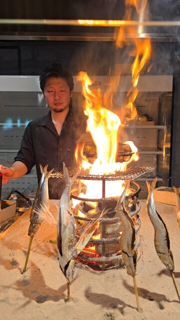「備長炉端 だいやめ」の最大の魅力は、何と言っても炉端焼きです‼️目の前で色鮮やかな食材が香ばしく焼かれていく様子は、見ているだけで食欲がそそられます。特に「特大えび」980円は、ぷりぷりの食感とジューシーな味わいがたまりません。また、「大和肉鶏 せせり炙り」880円も柔らかくてジューシーで、絶品でした。