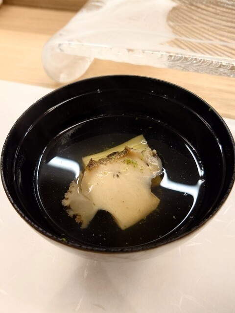 具材はエゾアワビ、水晶ナス。最後にかぼすで風味づけされた優しい味の出汁でした。