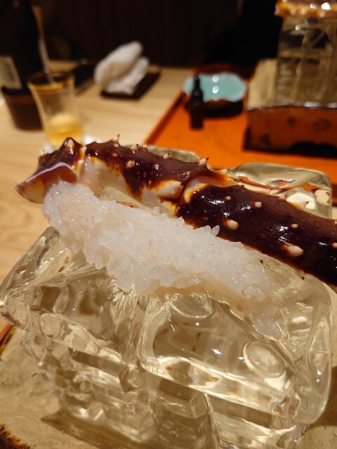 生、ミディアムレア、ミディアムと1本の足を3度楽しめる素敵な仕掛け。生は冷水につけることで蟹の身に花が咲いているような仕上がり(まさに、花咲ガニと思いましたがタラバです笑)!!とても弾力があり、こんなにプリプリのカニはじめてでした。