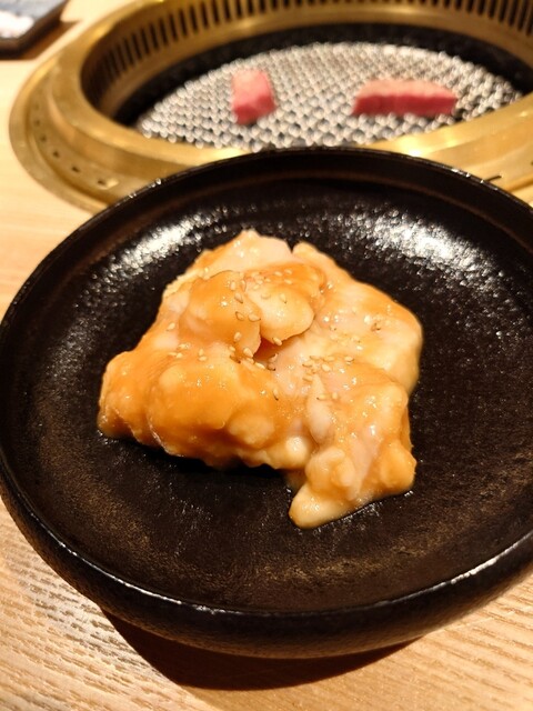 雲丹とキャビアが載った贅沢なユッケ!お肉は少し甘みのあるタレで味付けされています。キャビアの弾ける食感との相性がよく、生のお肉があまり得意ではない私でもおかわりしたいくらいの美味しさでした!!!