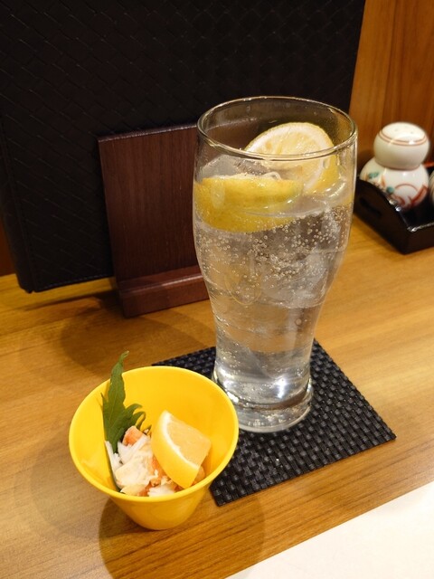 お通しのタラバガニのむき身は歯ごたえがありつつほどける旨みたっぷり。
