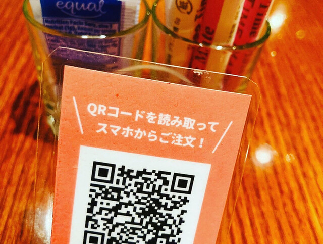 テーブル席40、カウンター席6の店内は、いつも満席ですが、落ち着いた雰囲気の居心地の良い空間です。QRコードを読み取ってスマホから注文するシステムにいつの間にかなっていて、さすが若者に人気のあるお店ですね。