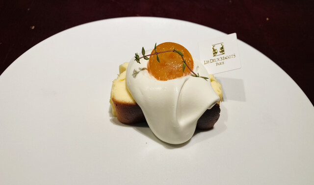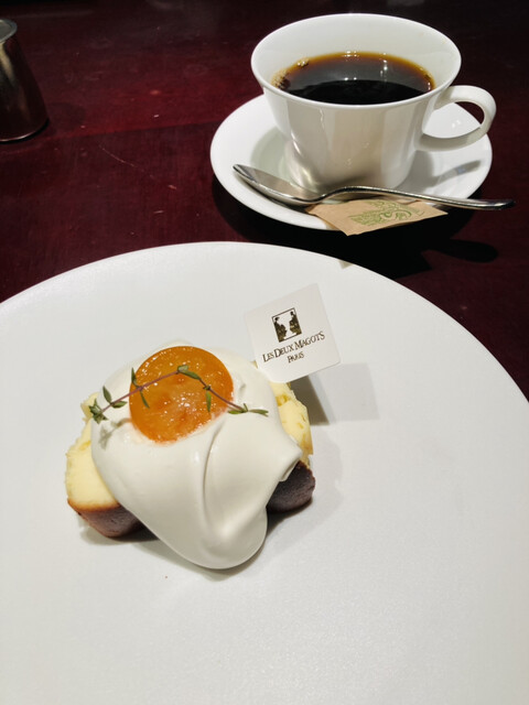 デザートのケーキは、バスクチーズケーキ。上にクリームとキンカンがのっています。さすがドゥマゴのスイーツは、絶品です。