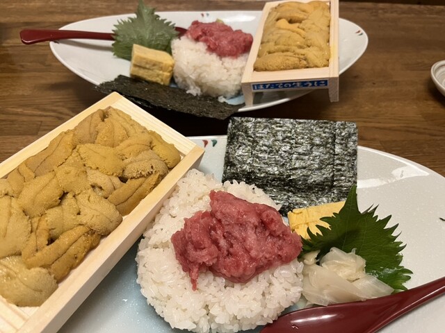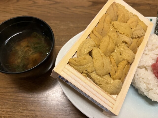 大洗駅から車で5分、徒歩で20分ほどの港に近いところにあります。「ひたち海浜公園」のネモフィラを観に行き、翌日東京に戻る前の昼食に主人と寄りました。予約していなかったので並ぶのは覚悟でしたが、幸運にも空いていて半個室のような掘り炬燵式テーブルに案内されました。とても落ち着く空間です。目の前に大きな魚屋さんがある直営レストラン。どうりでお魚が新鮮で美味しいはずです。お魚屋さんの右横の細い道を入ったところにお店があります。風情な佇まい。「あんこう」が有名なお店ですが、メニュー表には載っていない本日のスペシャルの中から【うにトロ丼】3,800円を頂きました。ウニが大好物なので、あったらそれにしようと決めていたので迷わず注文。木の器に目一杯引き詰められて提供されたウニは、甘くて口当たりが良くて新鮮です。本当に美味しいウニでした。今まで食べたことがない美味しさに感激しました。マグロも新鮮で質の良い昼食メニューに人気が頷けます。