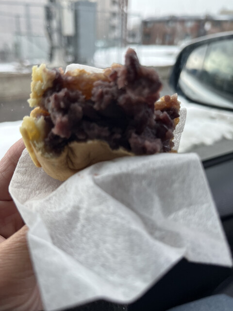 買い物ついでに敷地内にあるあじまん屋さんから、お小遣いであんことカスタードを1個ずつ買ってくれました♡