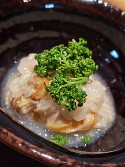 ハマグリ飯蒸し素揚げした海苔山椒