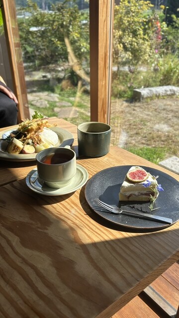 TOGO BOOKS nomadik さんを訪れ、季節のロールケーキ(栗)とハーブティー(黒文字茶)をいただきました。ロールケーキは米粉を使用していて、ふんわり軽やかな食感ながらも栗の濃厚な風味がしっかりと感じられます。自然な甘さで、食べたあとも重くならない優しい美味しさ。店員さんによると、こちらでは「体に良くて美味しいもの」を追求しているとのことで、素材へのこだわりが伝わる一皿でした。黒文字茶は香りがとても良く、心がすっと落ち着くような味わいで、ロールケーキとの相性も抜群です。