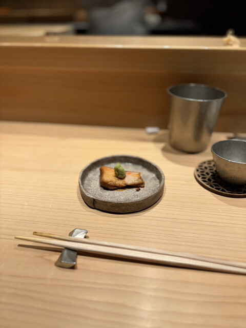 日本酒も14代や新政など好みの銘柄を半合ずつ出してくれるスタイルで、色々飲めて嬉しい。