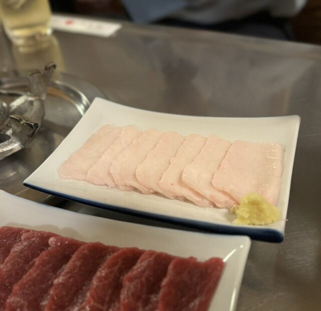 最初は馬刺し!あぶらとセットで!