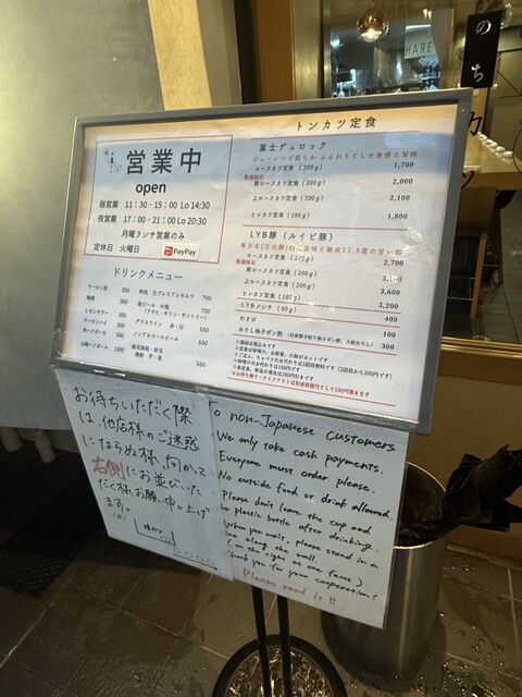17時オープンの「晴のちカツ」へ。少し早めに到着し、店前で待っていたところ、16:55に快く入店させていただきました。
