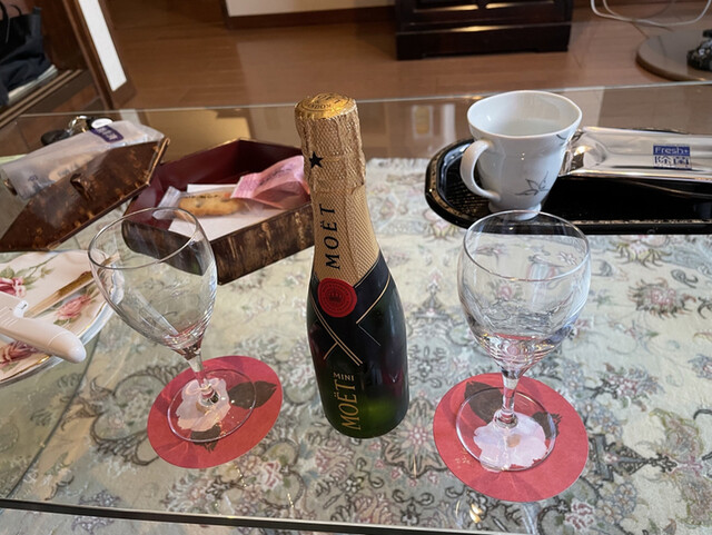再訪すると頂けるモエシャンドンで乾杯、その後は生ビール、そして白ワインはシャブリをフルボトルで。