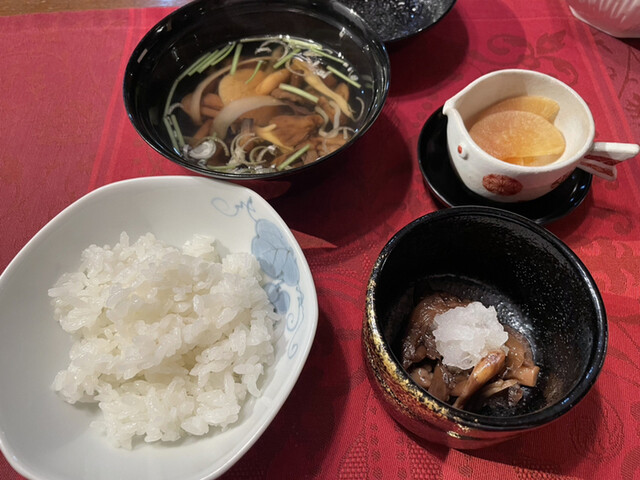サワモタシの旨煮とキノコのお吸い物が美味しかったです。