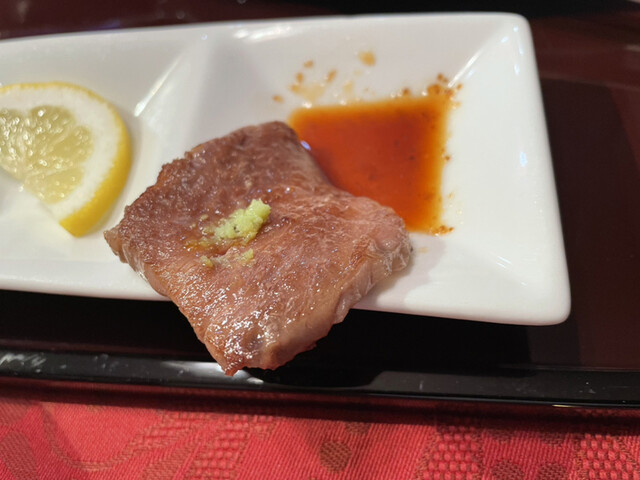 由利牛と野菜の石焼き、かなり脂ののったお肉なので2枚で満足。