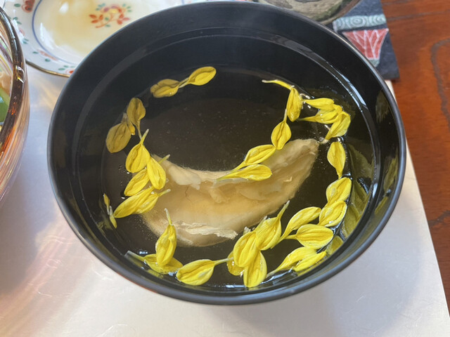 鮑。吉野葛がかかってます。熱々なので寒い日に嬉しい。
