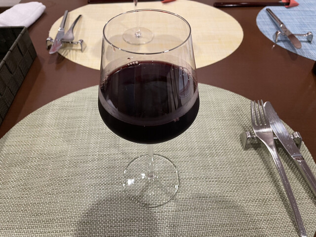 前菜を食べてから、赤ワイン。調子に乗ってハイボール。