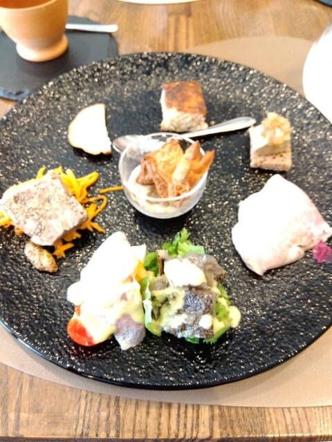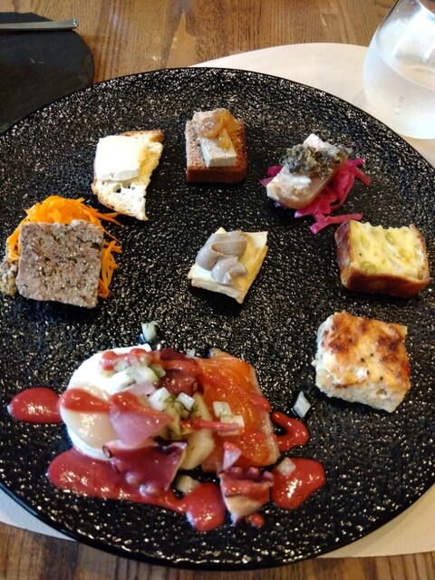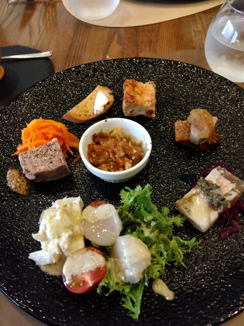 もろこしのムースに始まり、オードブルのパレットは、どれから頂こうかと迷ってしまいます。迷いフォーク。綺麗に並べられて食べるのが勿体ないぐらい。