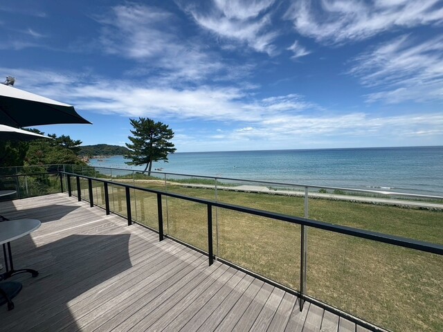 追加したバスクチーズケーキとドリンクは、テラスでいただき、夏の日本海を独り占めしてきました。