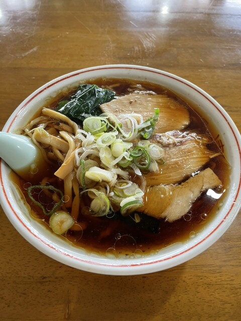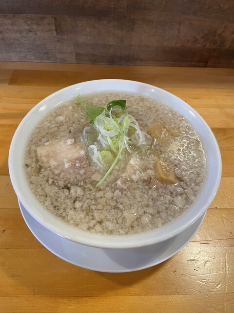 山鹿店で初めて食べた山塩ラーメンに感動し念願の本店へ初訪問。せっかく来たので会津山塩チャーシューメン大盛り¥1,450を注文。麺も見えないほどに覆うチャーシュー麺が着丼。琥珀色の動物系スープに山塩の甘...