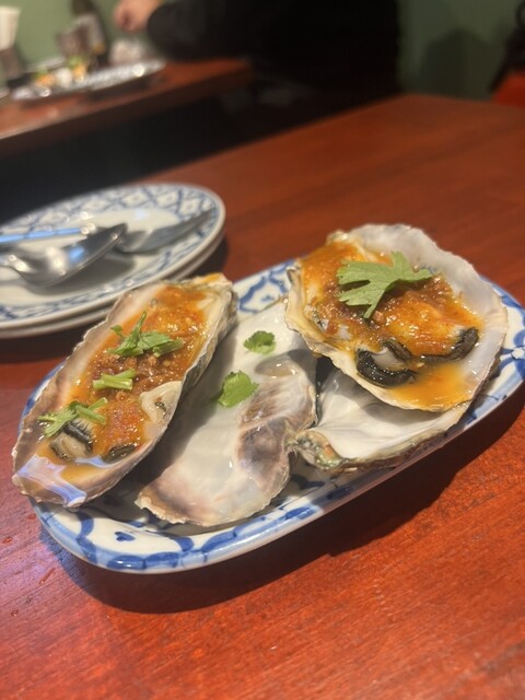 車で来ていたのでお酒は飲めなかったが、生牡蠣、イカゲソのガパオ(ライス追加)、興奮のあまり写真を撮り忘れたがカオマンガイを注文した。