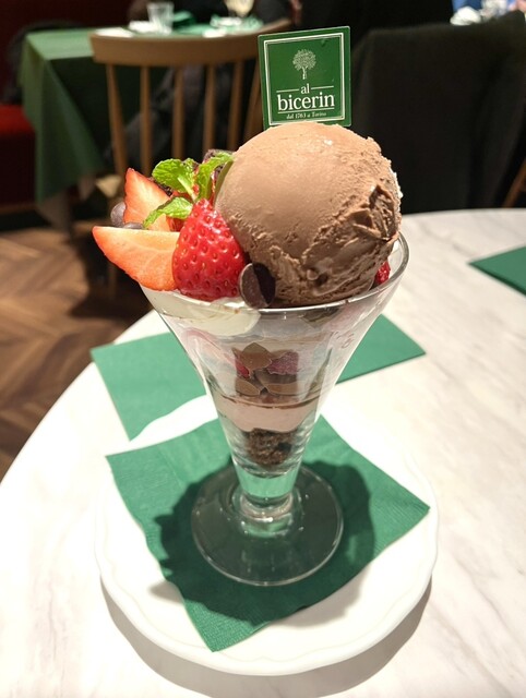 パフェは写メでは見えづらいですが上のチョコアイスの後ろに苺のアイスも乗っていて食べ進めていくと中にブラウニーやチョコムース?と濃厚でとても私好みなパフェでした♡