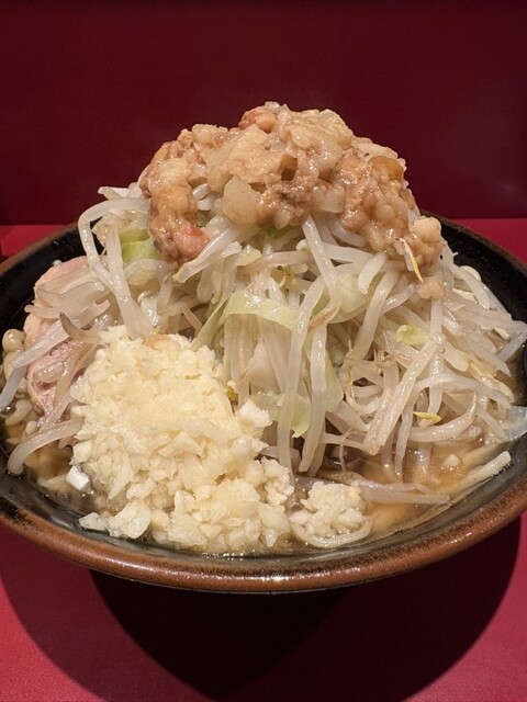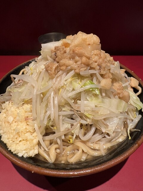 最近バグりすぎてて、並の二郎系の1.5倍くらいの麺量。でもどうしても麺少なめコールが言えない。