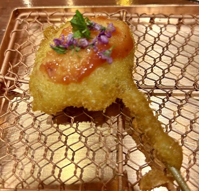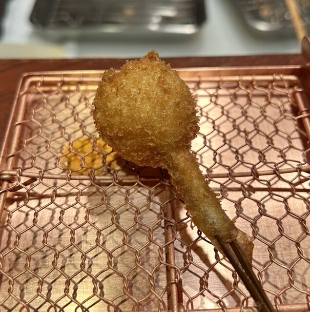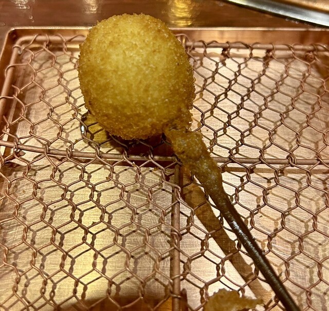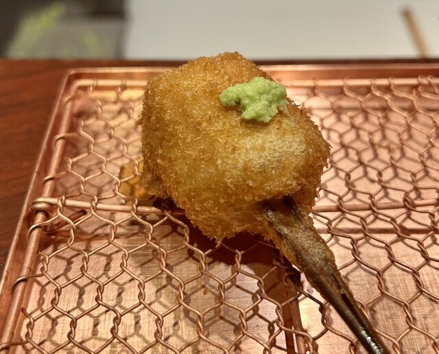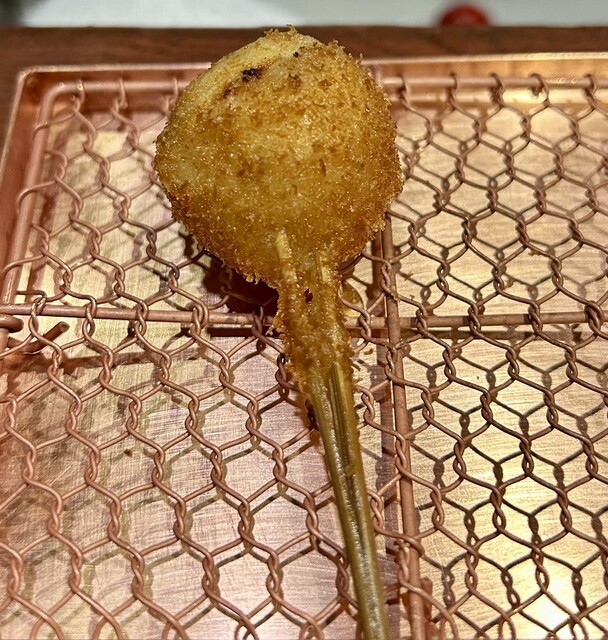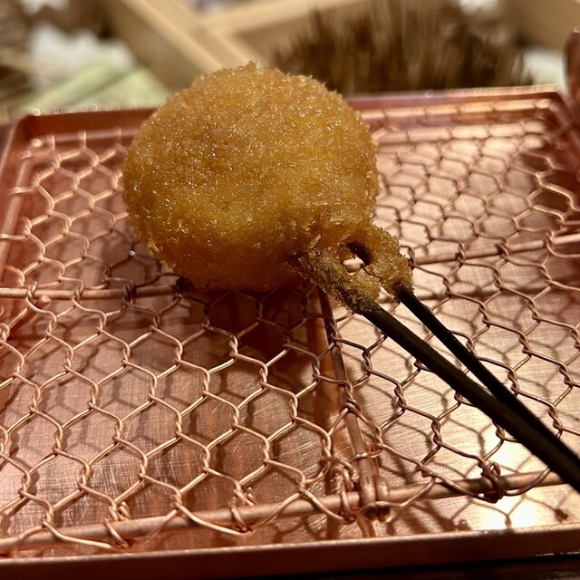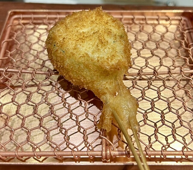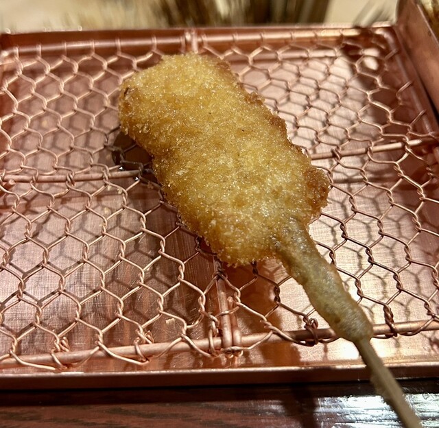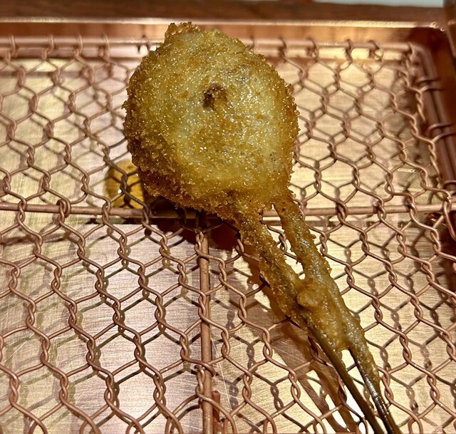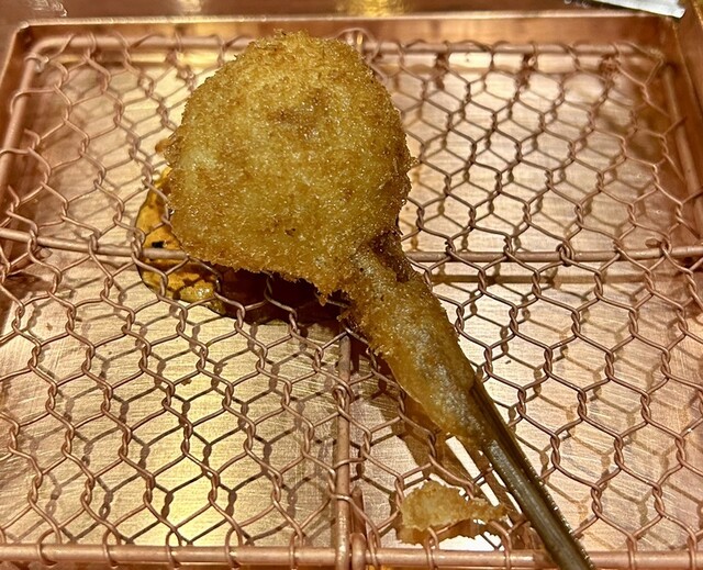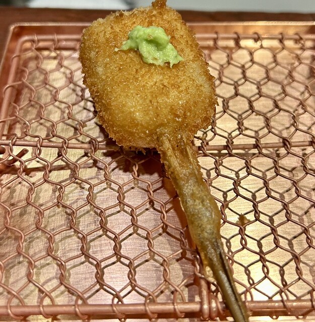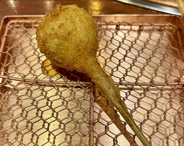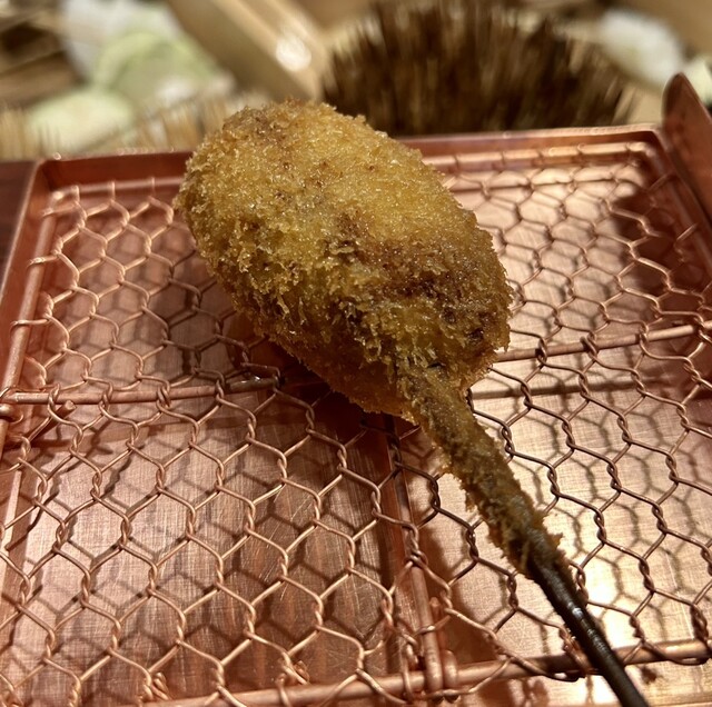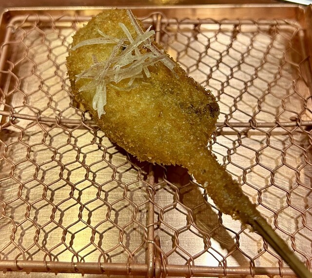 関西の串かつ界では、名店中でも最高峰と言えるお店だと思います。串かつの一品一品に店主の拘りや工夫が為されていて、非常に奥深さを感じます。付けたれも4種類とレモン等があり、それぞれにお店からのお勧めがなされる。本当に美味しく充実なひと時を楽しむ事が出来ました。基本コースで21本他の追加を含めて30本以上、、これだけあるのです。最後にコスパが大阪の名店の半額では、人気があって当然だと納得出来ます。是非是非一度行ってみれば分かると思います。