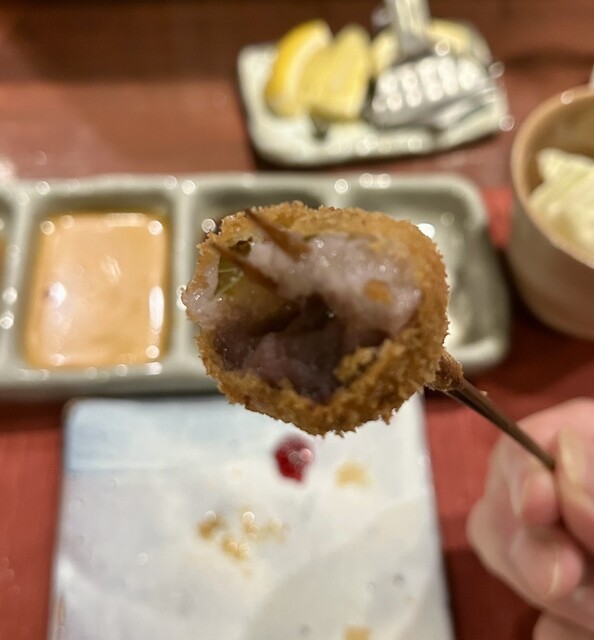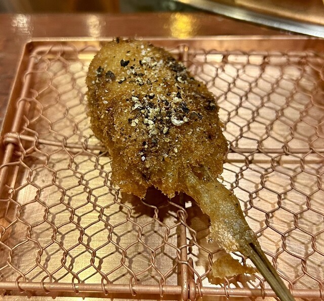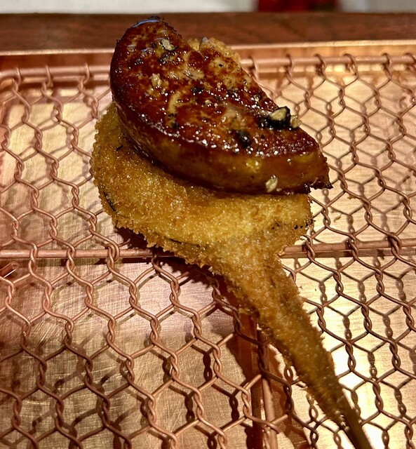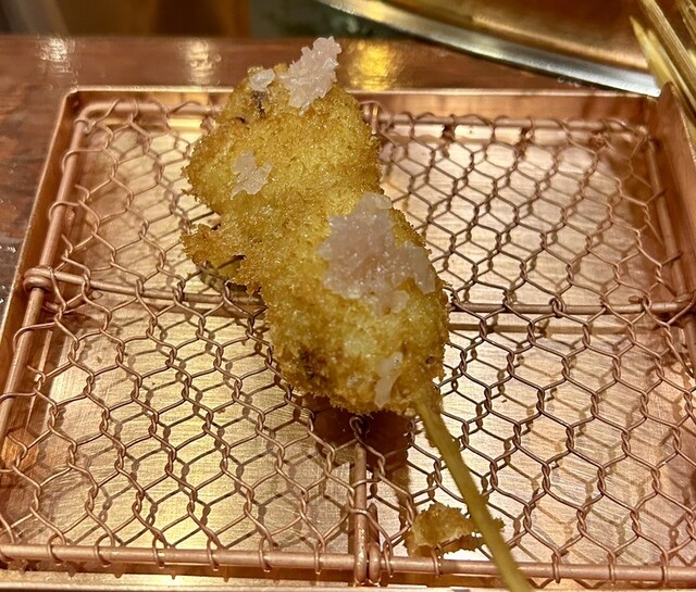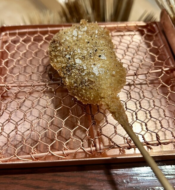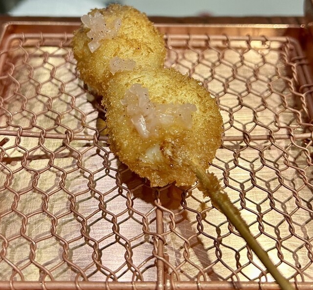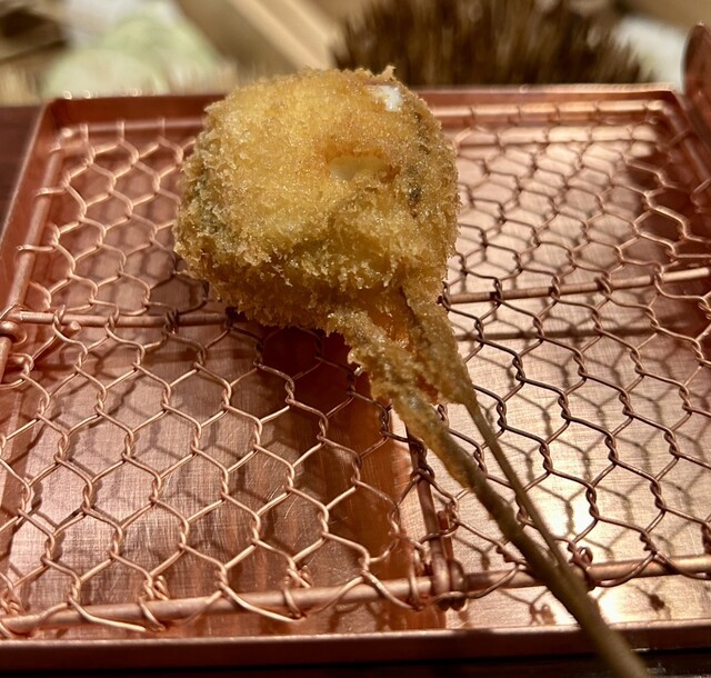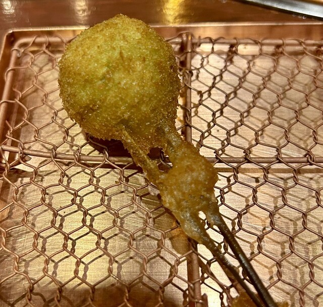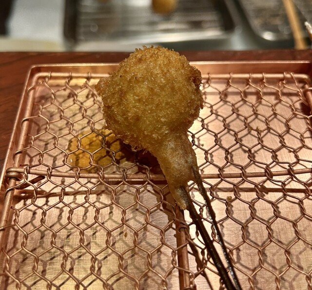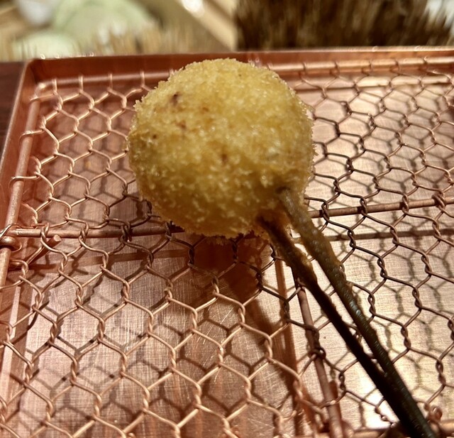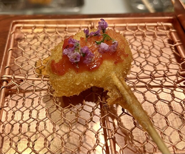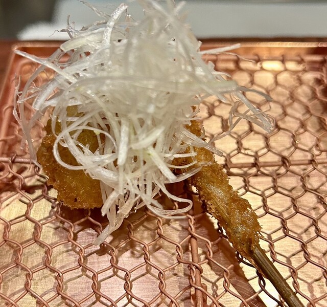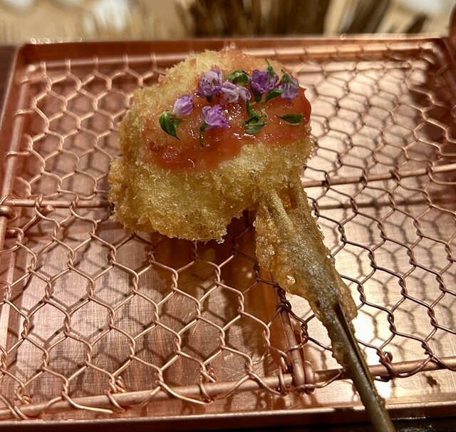 関西の串かつ界では、名店中でも最高峰と言えるお店だと思います。串かつの一品一品に店主の拘りや工夫が為されていて、非常に奥深さを感じます。付けたれも4種類とレモン等があり、それぞれにお店からのお勧めがなされる。本当に美味しく充実なひと時を楽しむ事が出来ました。基本コースで21本他の追加を含めて30本以上、、これだけあるのです。最後にコスパが大阪の名店の半額では、人気があって当然だと納得出来ます。是非是非一度行ってみれば分かると思います。